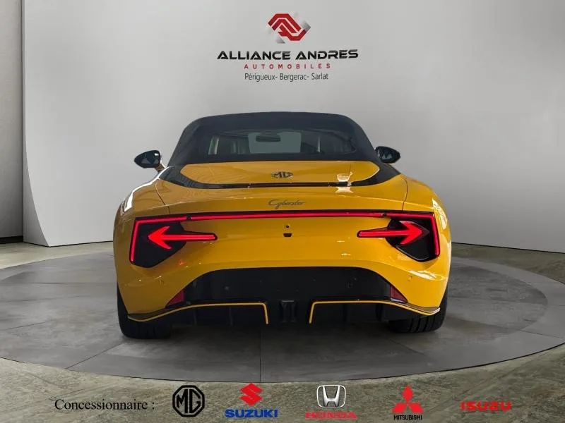 Mis en circulation pour la première fois le 12/11/2025, ce véhicule MG MOTOR Cyberster d’occasion 510ch 77kWh 4WD vous est proposé au prix de 68 640 €. MG MOTOR Cabriolet de couleur « Inca Yellow / Toit Noir » avec 10 km à son compteur, cette automobile possède une boîte de vitesse Automatique et une puissance de 20 chevaux fiscaux. Ce véhicule d’occasion 2 portes et 2 places est disponible à TRELISSAC.